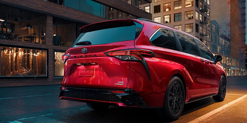 The exterior of the 2021 Toyota Sienna has a sleek look, with a sloping hood, wide headlights that wrap around the hood, and deep body lines along its flanks. The fog lights are understated and set at either side of the grille's base. The 2021 Sienna is available in LE 8 Passenger, XLE 7 Passenger, XLE 8 Passenger, XSE 7 Passenger, Limited 7 Passenger, and Platinum 7 Passenger.