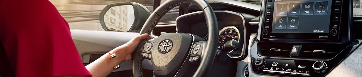 Inside the Corolla, you'll find seating for five with plenty of room for everyone to relax and enjoy the ride. The driver-centric cabin ensures that you're in the center of the action while keeping you relaxed yet alert. The premium seating surfaces will make everyone feel comfy, and they're easy to clean, so you don't have to stress about spills. You can also take advantage of a smartphone-compatible infotainment system.