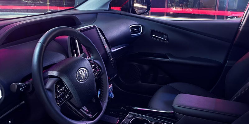 For passenger space, the Prius Prime has five seats. As for cargo, the Prius Prime has 19.8 cubic feet of space behind the back seats. Fold the seats down, and the Prime has 36.6 cubic feet of cargo space. The Prime's infotainment system is a 7-inch touchscreen with Apple CarPlay/Android Auto smartphone integration with Amazon Alexa compatibility. The Prius Prime's touchscreen infotanment system also includes three USB ports, a satellite radio, a CD player, Bluetooth phone/audio, and a 6-speaker sound system. For seat material, the Prime has standard cloth upholstery with optional synthetic leather upholstery. For the XLE, the Prime has black, Harvest Beige, or Moonstone SofTex Seat Trim. The top-tier trim Limited has a heated steering wheel and remote air conditioning activation.