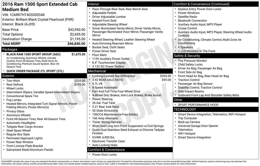 - Vehicle Name: Ram 1500
