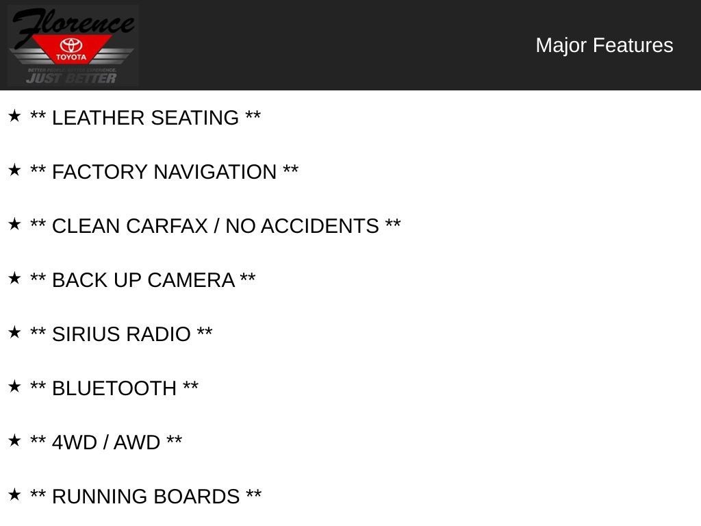 At Florence Toyota, we're committed to providing our customers with the best possible experience. Come see how our USED CARS are JUST BETTER. We offer a Lifetime Powertrain Warranty, 1st Year Maintenance, $500 Additional Trade-In Appraisal, and much more. Call us today at (866)830-0793 or visit us at www.florencetoyota.com to schedule a test drive and experience the thrill of the Wrangler Altitude for yourself.