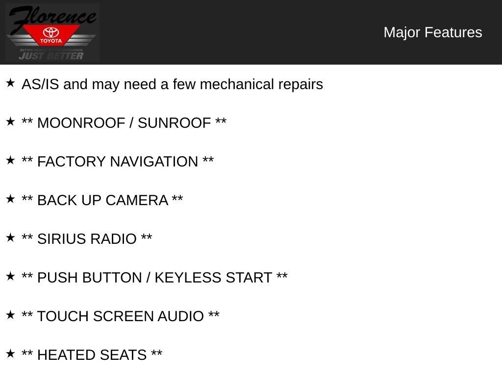 AS/IS and may need a few mechanical repairs, ** MOONROOF / SUNROOF **, ** FACTORY NAVIGATION **, ** BACK UP CAMERA **, ** SIRIUS RADIO **, ** PUSH BUTTON / KEYLESS START **, ** TOUCH SCREEN AUDIO **, ** HEATED SEATS **, ** POWER LIFTGATE **, ** Bluetooth® **, ** 4WD / AWD **, ** APPLE CAR PLAY / ANDROID AUTO **, ** ACTIVE / ADAPTIVE CRUISE CONTROL **, Outback 2.5i Premium, 4D Sport Utility, 2.5L 4-Cylinder DOHC 16V, CVT Lineartronic, AWD, Auto-Dimming Rear View Compass Mirror w/HomeLink, Automatic temperature control, CD player, Front dual zone A/C, Front fog lights, Fully automatic headlights, Power driver seat.
