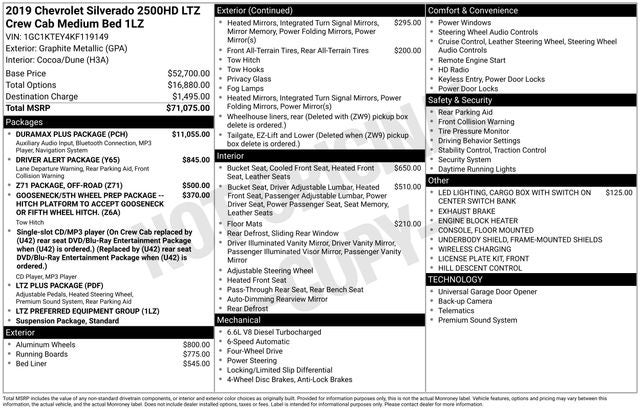 - Gooseneck/5th Wheel Prep Package, Off-Road Z71 Package, and Duramax Plus Package
