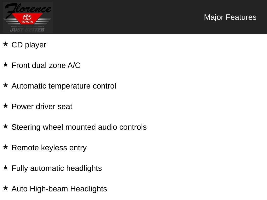 - Radio: Lexus Display Audio -inc: AM/FM/in-dash CD, HD Radio (complimentary traffic and weather), 7" VGA screen, 8 speakers, 293-watts, digital signal processing w/Automatic Sound Levelizer (ASL), integrated SiriusXM satellite radio receiver (complimentary 90-day trial subscription included), Scout GPS link, iTunes tagging, MP3/WMA and dual USB plugs, rear glass-imprinted radio antenna w/separate FM diversity antenna and streaming audio via Bluetooth® 3.0