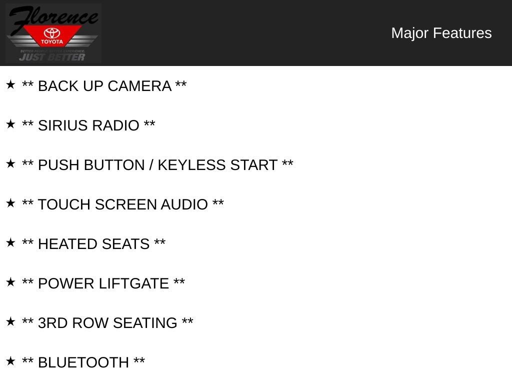 - Seating, 7-passenger (2-2-3 seating configuration)
