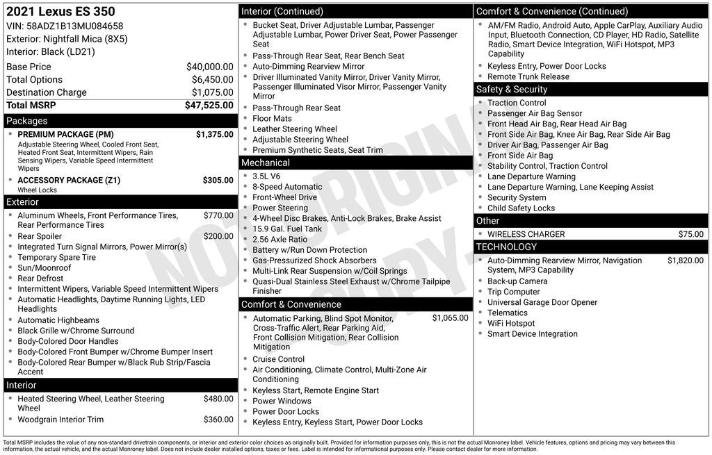 - Radio: Multimedia System w/8" Color Display -inc: Apple CarPlay integration, Android Auto, Alexa+Lexus compatibility, Remote Touch Interface (RTI) pad w/back button, 7-inch MID screen, 10-speaker Pioneer audio system, USB audio input connections, backup monitor, Bluetooth® hands free phone and automatic phonebook download capabilities, Bluetooth® streaming audio, CD player, HD Radio, integrated SiriusXM satellite radio receiver (complimentary 90-day trial subscription), Lexus Enform Safety Connect (included for the first three years of ownership), Lexus Enform Service Connect (included for the first 10 years of ownership), Lexus Enform Wi-Fi, 4GB (three-month trial is included), Lexus Enform Remote w/Amazon Alexa and Google Assistant compatibility (included for the first three years of ownership) and Lexus mobile app services (Lexus Enform Remote, Lexus Drivers and more)