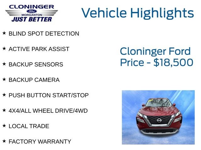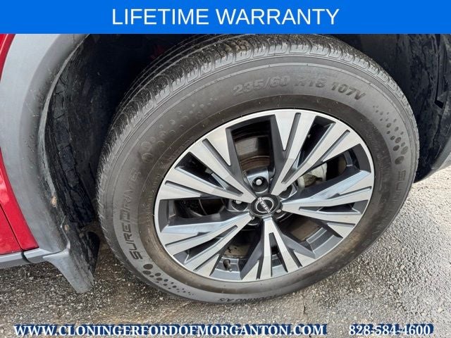 Lifetime & Blue Certified Certified, AWD, 18 Aluminum Alloy Wheels, 4-Wheel Disc Brakes, 5.604 Axle Ratio, 6 Speakers, ABS brakes, Air Conditioning, Alloy wheels, AM/FM Radio, AM/FM radio: SiriusXM, Auto High-beam Headlights, Automatic temperature control, Black Splash Guards (Set of 4), Brake assist, Bumpers: body-color, Chrome Rear Bumper Protector, Cloth Seat Trim, Delay-off headlights, Driver door bin, Driver vanity mirror, Dual front impact airbags, Dual front side impact airbags, Electronic Stability Control, Emergency communication system: NissanConnect Services, First Aid Kit, Floor Mats w/1-Piece Cargo Area Protector, Four wheel independent suspension, Front anti-roll bar, Front Bucket Seats, Front Center Armrest, Front dual zone A/C, Front reading lights, Fully automatic headlights, Heated door mirrors, Illuminated entry, Knee airbag, Low tire pressure warning, NissanConnect featuring Apple CarPlay and Android Auto, Occupant sensing airbag, Outside temperature display, Overhead airbag, Overhead console, Panic alarm, Passenger door bin, Passenger vanity mirror, Power door mirrors, Power driver seat, Power steering, Power windows, Radio data system, Rear anti-roll bar, Rear Parking Sensors, Rear seat center armrest, Rear side impact airbag, Rear window defroster, Rear window wiper, Remote keyless entry, Security system, Speed control, Speed-Sensitive Wipers, Split folding rear seat, Spoiler, Steering wheel mounted audio controls, Tachometer, Telescoping steering wheel, Tilt steering wheel, Traction control, Trip computer, Turn signal indicator mirrors, and Variably intermittent wipers.