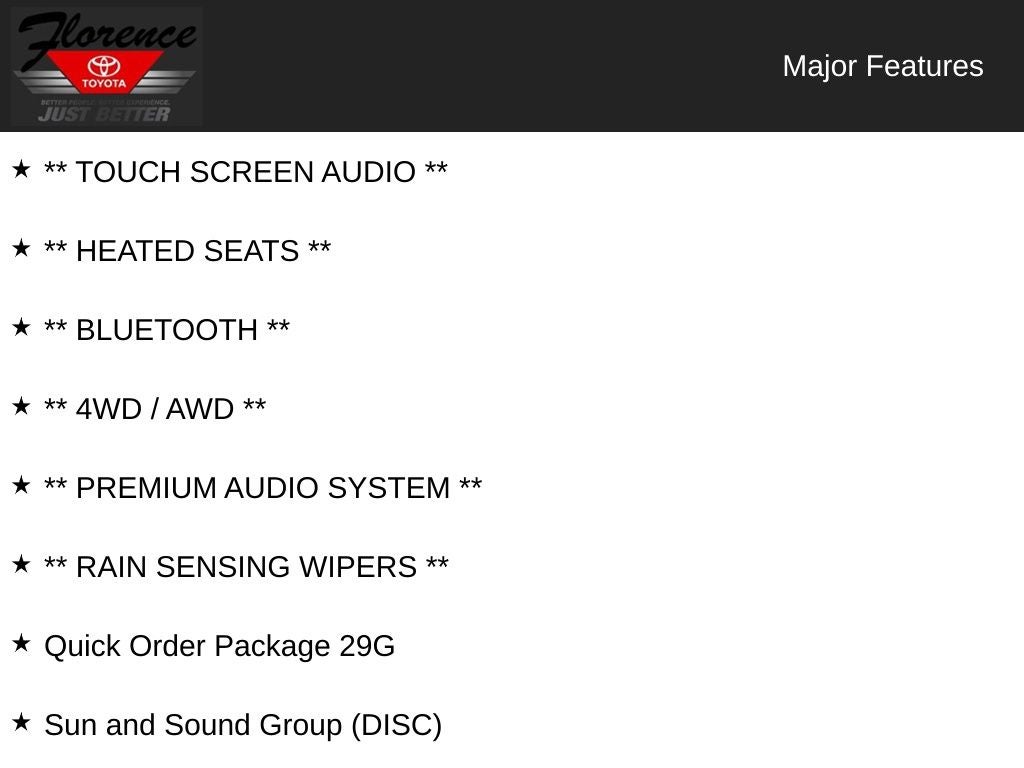 Sun and Sound Group: Premium Alpine Speaker System; Power Front/fixed Rear Full Sunroof. Quick Order Package 29G. Diamond Black Crystal PC. **Equipment listed is based on original vehicle build and subject to change. Please confirm the accuracy of the included equipment by calling the dealer prior to purchase.**