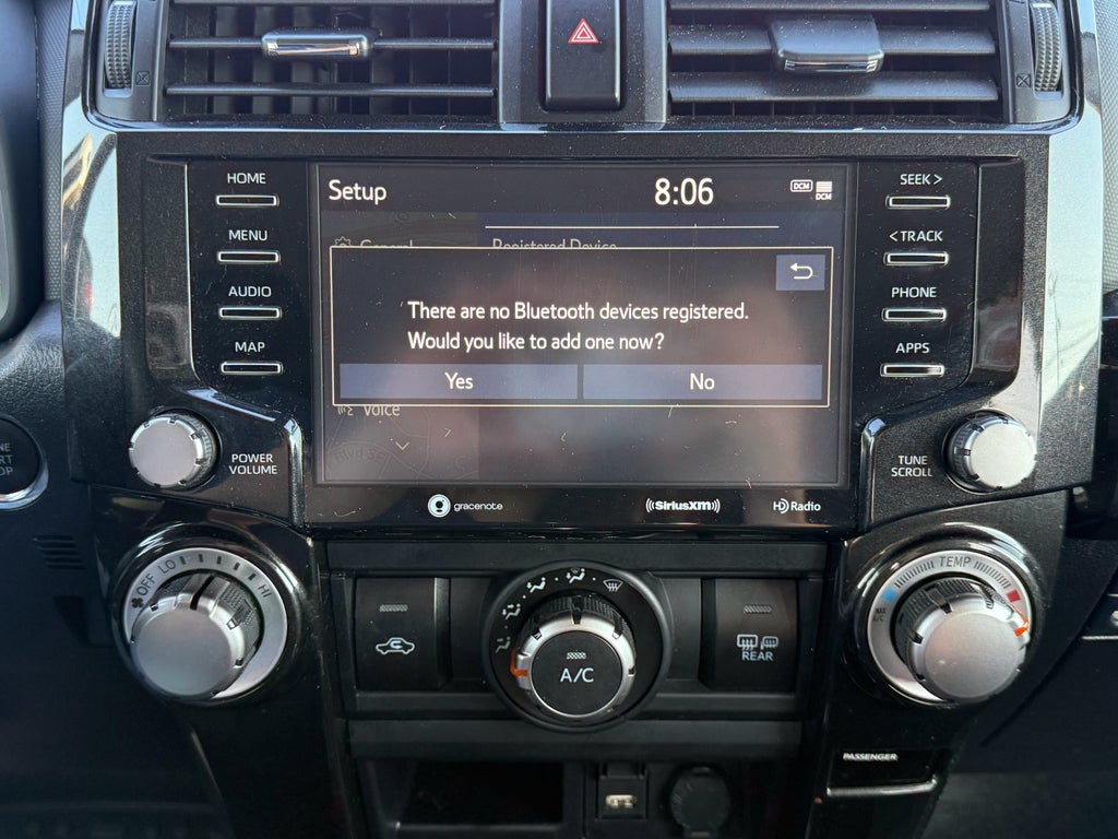 8.0" touch-screen, HD Radio, 8 speakers, Android Auto, Apple CarPlay and Amazon Alexa compatible, USB media port, 4 USB charge ports, Dynamic Navigation w/up to 3-year trial, Dynamic POI Search, Dynamic Voice Recognition, advanced voice recognition hands-free phone capability and music streaming via Bluetooth® wireless technology, SiriusXM w/3-month Platinum Plan trial and Connected Services (Safety Connect w/1-year trial, Wi-Fi Connect w/up to 2 GB within 3-month trial and Destination Assist Connect w/1-year trial), See toyota.com/audio-multimedia for details