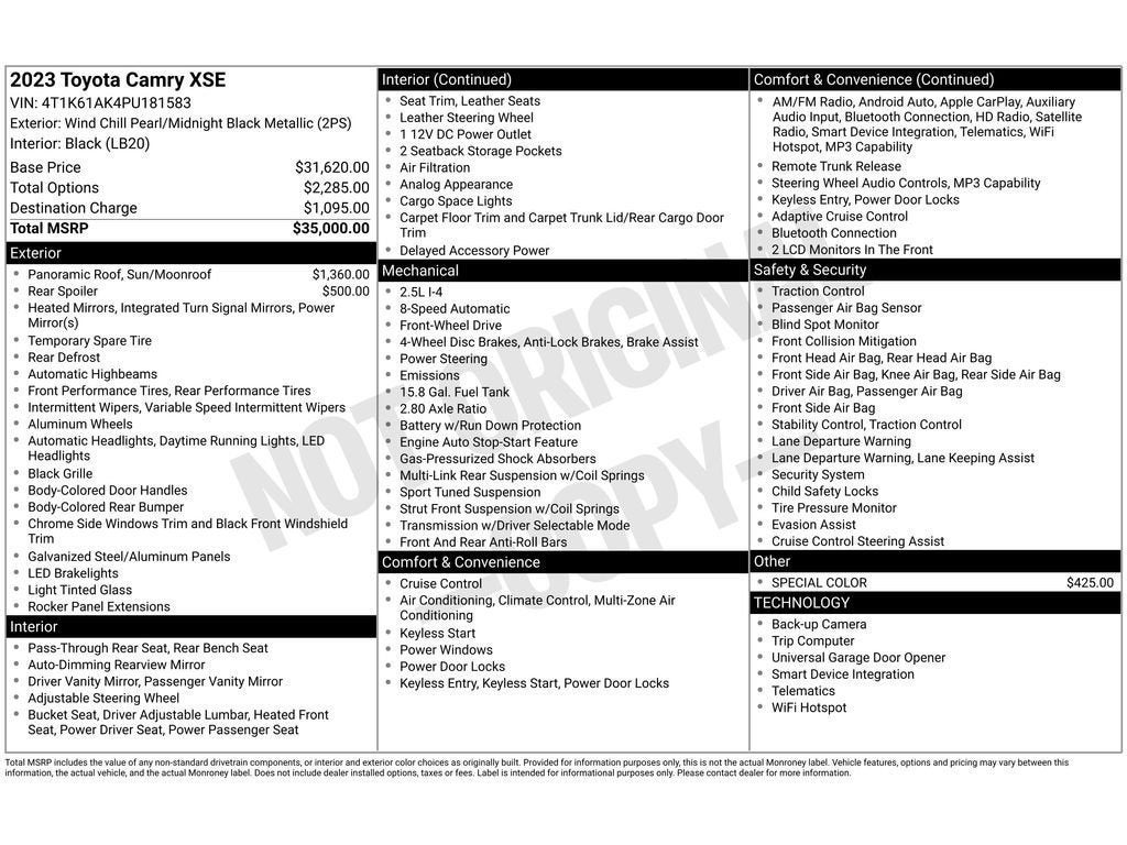 Experience the thrill of driving a like-new 2023 Toyota Camry XSE, now available in Florence, SC. This pristine example shows just 0 miles and delivers the dynamic styling and refined performance Toyota Camry drivers love. Powered by a responsive 2.5L 4-cylinder gasoline engine with FWD, the XSE trim blends sporty handling with a composed, comfortable ride for everyday driving and weekend adventures. Inside, premium leather seats and automatic climate control create a welcoming, upscale cabin you'll appreciate on every trip. Modern connectivity is seamless with Android Auto, keeping your favorite apps, messages, and navigation accessible and easy to use. Safety and convenience features are highlighted by Cross-Traffic Alert and a back-up camera, helping you park and maneuver with added confidence. This low-mileage 2023 Toyota Camry XSE presents an exceptional opportunity to own a meticulously maintained vehicle that looks and feels like new. The bold exterior design, athletic stance, and refined interior details set this Toyota Camry apart from the rest. Whether you're commuting through Florence or taking a longer journey, this Toyota Camry offers the blend of comfort, technology, and driver-focused performance you want. Schedule a viewing or test drive in Florence, SC, to experience this outstanding 2023 Toyota Camry XSE for yourself. Vehicles in this condition are rare-don't miss your chance to own one.