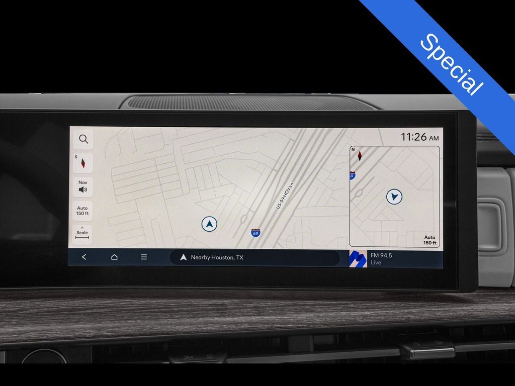 - Radio: AM/FM/HD Bose Premium Audio System -inc: 12 speakers including subwoofer, external amplifier, 12.3" wide touchscreen, Apple CarPlay and Android Auto, Bluetooth® hands-free w/wireless audio streaming, dynamic voice recognition, USB connectivity, SiriusXM, Blue Link connected car system, over-the-air updating capability, navigation system including traffic flow w/incident data via HD Radio (HERE) and rear seat quiet mode
