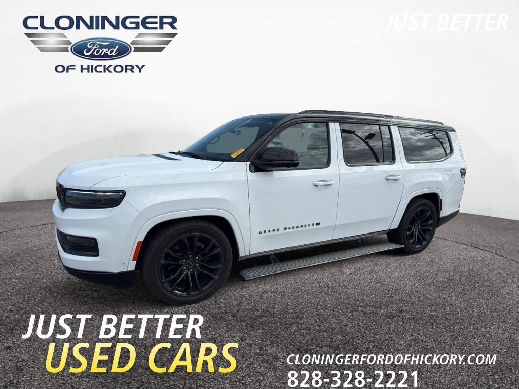 This 2024 Jeep Grand Wagoneer L comes with a Blue Oval Certification 90-day/4,000 miles limited comprehensive warranty. Blue Oval is Ford Motor Company’s mark of excellence, awarded to dealerships that meet the highest standards for customer satisfaction, sales, and service performance. Certified dealers demonstrate a strong commitment to quality through factory-trained technicians, modern facilities, transparent processes, and a customer-first approach. Blue Oval Certification ensures customers receive a consistently high level of expertise, reliability, and care at every stage of the Ford ownership experience. This vehicle has been looked over from our mechanics to ensure safety and passes NC State Inspection guidelines. In addition, we have performed the following services * 139 Point Inspection *New Cabin Filter *New Engine Air Filter *New Wiper Blades *Alignment *Oil Change *New Diesel Fuel Filter (if applicable) *BG Assurance Package . Vehicles must pass a comprehensive Ford inspection. At Cloninger Ford of Hickory come see how we are your "JUST BETTER" dealership. We offer the following benefits: Better Value Guarantee, 1st Year Maintenance, $500 Additional Trade In Appraisal, 72 Hour Vehicle Exchange Program, Yearly Vehicle Appraisal & Safety Inspection, VIP Loyalty Program, Routine Express Service, Courtesy Service Shuttle, Express Buying Service. Also, as an added benefit we will buy your vehicle even if you don't buy ours!! Call today (828)328-2221 or visit us at www.cloningerfordofhickory.com *Customer must trade-in a vehicle to receive $1,000 Trade Assist credit that is included in the online price. **Financing must be provided by a third-party lender using this dealership’s assistance for Customer to receive $1,000 Financing Assist credit that is included in the online price. Does not include sales tax, DMV Fees, $799 Appearance Protection, any lender fees for financing, plus dealer related fees for $899 doc and vehicle prep. See dealer for complete details.