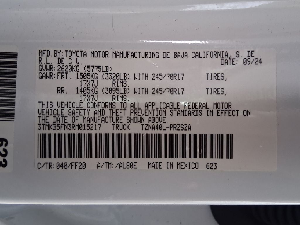 - Vehicle Name: Toyota Tacoma 2WD