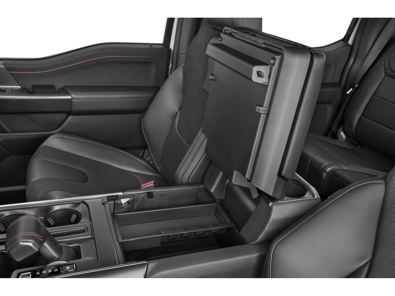 Climb inside the Raptor's cabin and immerse yourself in a world of premium comfort and cutting-edge technology. The RECARO Alcantara Suede front seats, heated steering wheel, and dual-zone automatic climate control create an unrivaled driving experience. Stay connected with the SYNC 4 infotainment system, complete with enhanced voice recognition and a premium B&O sound system.