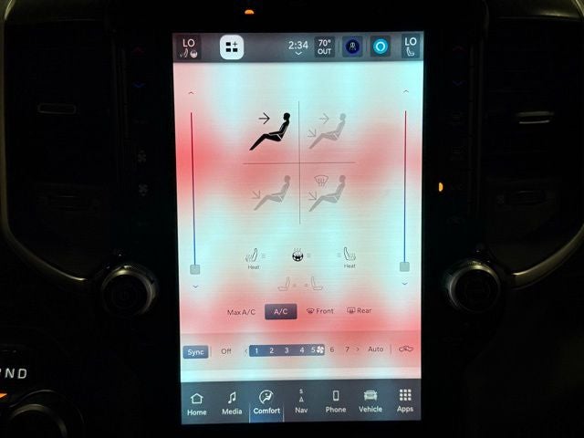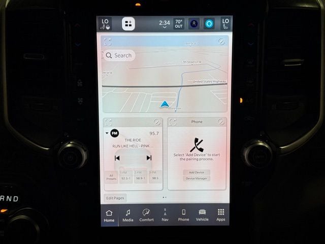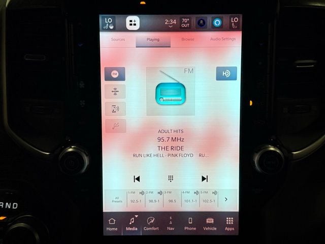 115V Auxiliary Power Outlet, 115V Auxiliary Rear Power Outlet, 12 Touchscreen Display, 2nd Row In Floor Storage Bins, 400W Inverter, 4G LTE Wi-Fi Hot Spot, 9 Amplified Speakers w/Subwoofer, Air Conditioning ATC w/Dual Zone Control, Apple CarPlay, Auto Power-Folding Mirrors, Auto-Dimming Exterior Driver Mirror, Auto-Dimming Rear-View Mirror, Big Horn Badge, Big Horn Level 2 Equipment Group, Black Exterior Mirrors, Black Premium Power Mirrors, Cluster 7.0 TFT Color Display, Configurable Drive Mode, Connected Travel & Traffic Services, Connectivity - US/Canada, Convex Wide-Angle Exterior Mirror Insert, Exterior Mirrors Courtesy Lamps, Exterior Mirrors w/Heating Element, Exterior Mirrors w/Supplemental Signals, Glove Box Lamp, Google Android Auto, GPS Antenna Input, GPS Navigation, HD Radio, Heated Front Seats, Heated Steering Wheel, Integrated Voice Command w/Bluetooth®, Leather Wrapped Steering Wheel, LED Dome Lamp w/On/Off Switch, LED Footwell Lighting, Media Hub w/2 Charge Only USBs, Overhead LED Lamps, Power 2-Way Driver Lumbar Adjust, Power Adjust 8-Way Driver Seat, Power Adjustable Pedals, Premium Overhead Console, Quick Order Package 21Z Big Horn, Quick Order Package 23Z Big Horn, Radio: Uconnect 5 Nav w/12.0 Display, Rear Power Sliding Window, Rear Window Defroster, Remote Tailgate Release, Security Alarm, SiriusXM w/360L, Steering Wheel Mounted Audio Controls, Sun Visors w/Illuminated Vanity Mirrors, Universal Garage Door Opener, USB Host Flip.