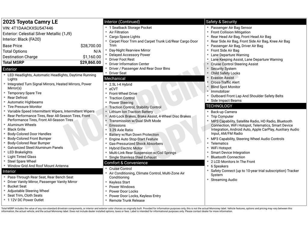 2025 Toyota Camry Hybrid LE